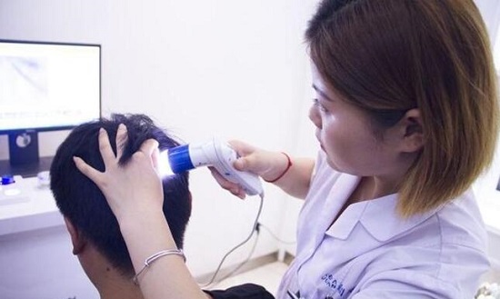 毛囊检测相信大家都很熟悉了,我们的每一根头发对应的毛囊都是存在一个生长期、休止期或衰退期的状态的,单凭肉眼无法看到它的健康状况。这时候,毛囊检测就派上用场了,它是一套先进的电子显微放大设备外加毛囊检测分析软件,可以清楚地看到头发生长环境,检查出脱发区域的相关数据,如毛囊活性、萎缩闭合情况、油脂分泌程度等,根据这些数据医生可以针对你个人的情况给出专属的防脱治疗方案。