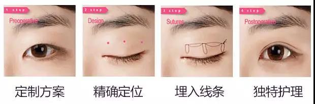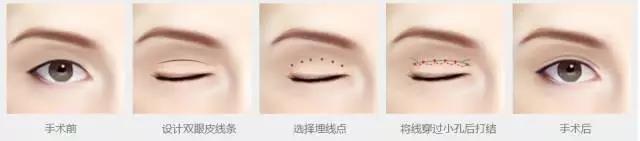 (3)埋线双眼皮:适合上睑眶隔脂肪少、皮肤薄且弹性好的年轻人。术后无需拆线,恢复时间在3周左右。