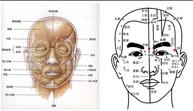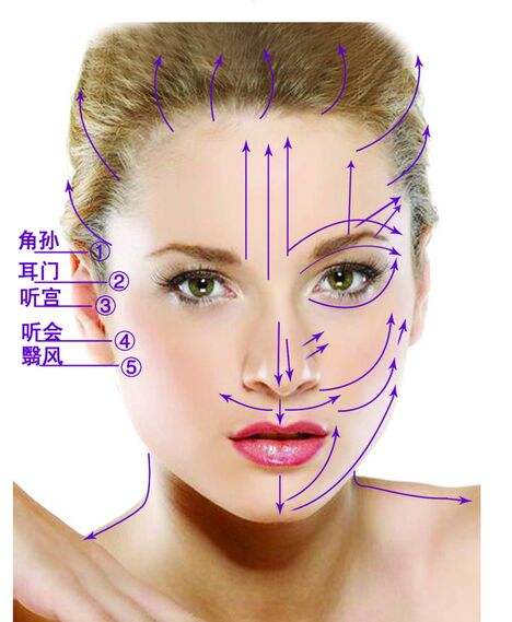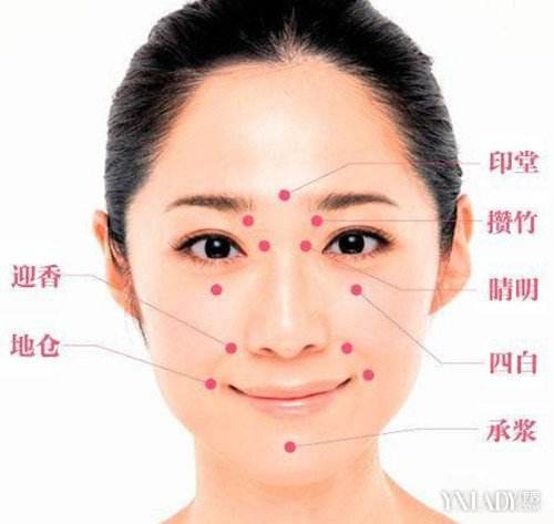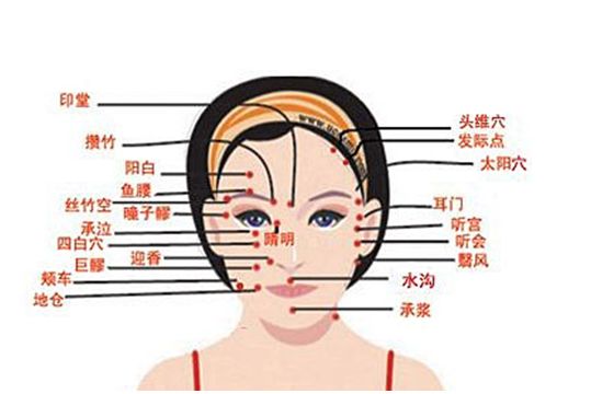 面部穴位 按摩美容总共有十六个穴:百会穴、印堂穴、攒竹穴、太阳穴;听宫穴、颊车穴、睛明穴、迎香穴;承泣穴 、四白穴、巨髎穴、地仓穴;颞骨穴、鱼腰穴、翳风穴、承浆穴。