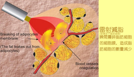 雷射减脂(破坏皮下脂肪细胞) 瞬间震碎脂肪细胞的细胞膜
