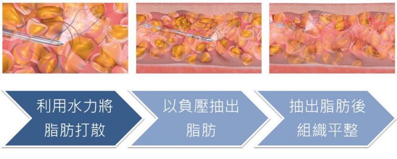 微粹脂:利用强力水柱温和冲刷切割脂肪,再以负压方式吸出分离之后的脂肪。对周边组织破坏性小,减缓术后肿胀及瘀青。