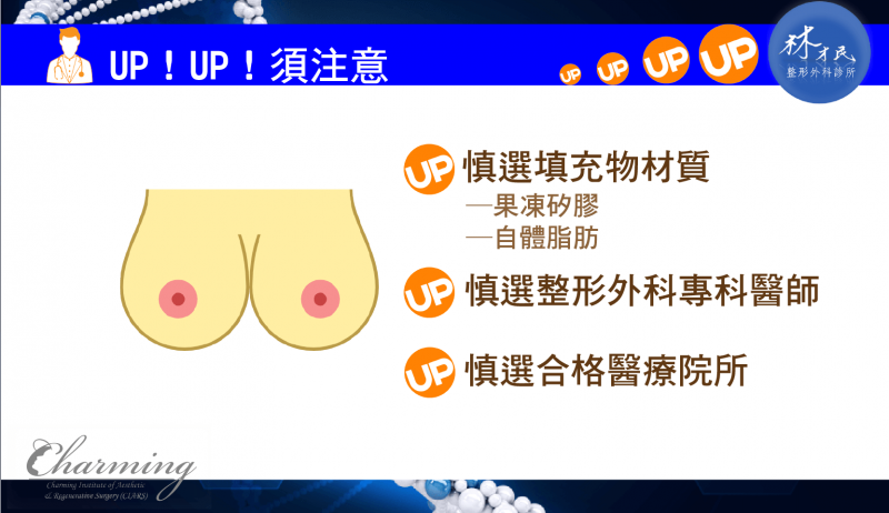 说到隆胸手术,很多人都知道矽胶果冻或所谓的水滴型隆胸。但各位朋友你们知道还有脂肪移植,或是玻尿酸隆胸〈目前已被医学界放弃,参考文献资料:一、二、三、四〉,甚至是灰姑娘隆胸吗?