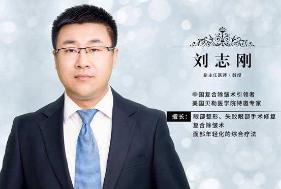 刘志刚:师从于中国除皱专家王志军教授,世界复合除皱鼻祖Dr.Sam T. 哈姆拉教授,独立开展整形外科手术一万多例,临床经验丰富,医理仿生理论发起人,2016年推出双眼皮新技术——“刘志刚重睑术”,保护眼周血管网技术,无痕无肿,恢复期仅为传统手术的四分之一。同年推出“刘志刚重睑修复术”,医学美学双复位,自然无痕一站美眼。2018年11月,刘志刚院长凭借“重睑术后板结畸形修复术”成功斩获中国第一届眼整形手术技术擂台大赛金刀奖。