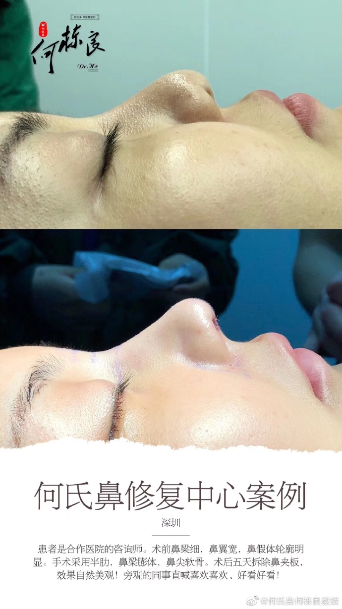 2010年鼻综合整形技术突破,应邀在“大连市医学会整形与美容分会年底学术研讨会”上做了“东方人的鼻尖整形”报告,被称为“中国鼻整形新领军人物”。“何氏鼻”开创者,其特点为俊俏挺拔、自然美观的韩式风格、术后效果逼真自然美观。