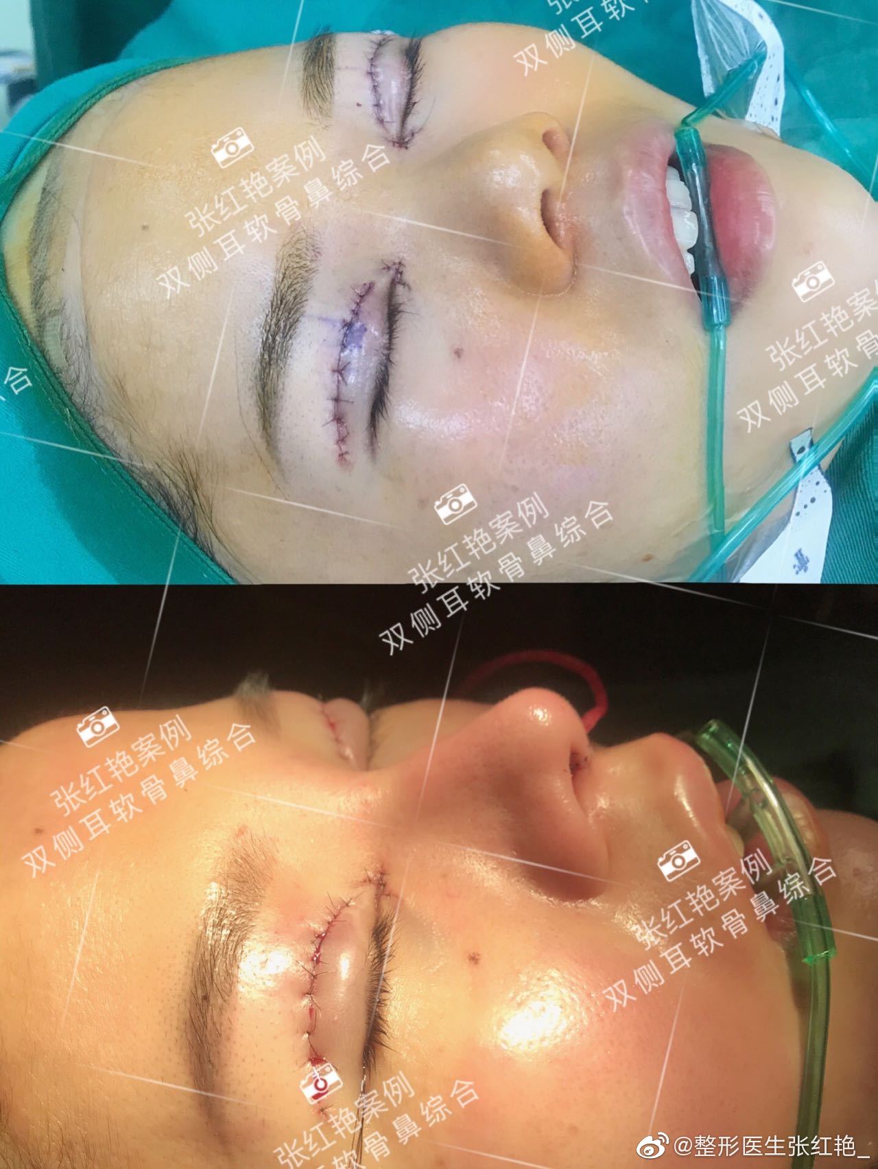 小姑娘鼻子基础很差,而且希望做的高挺一点,推荐了肋软骨,最终她还是选择了耳软骨,她的耳软骨很软,用耳软骨反复搭建支架有些辛苦,不过最终的效果还算满意,术后小姑娘一直担心鼻子不够高,看了对比照很开心,美丽是你的,自己开心最重要。