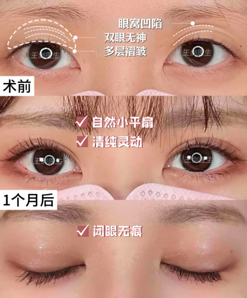 术前:眼窝凹陷、多层褶皱、双眼无神显凶。