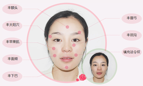 1) 自体脂肪补全脸主要包括6个部位: 额头、太阳穴、苹果肌、法令纹、脸颊、下巴。