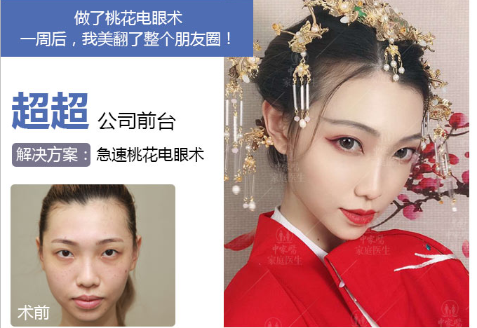 广州中家医家庭医生做双眼皮怎么样?看刘兵医生做的急速桃花电眼双眼皮效果: