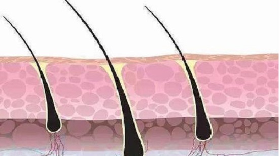 3、毛囊会因为在头皮或皮肤各处所处位置的不同(特别是头皮和皮肤的厚度不同),深度往往各不一致。
