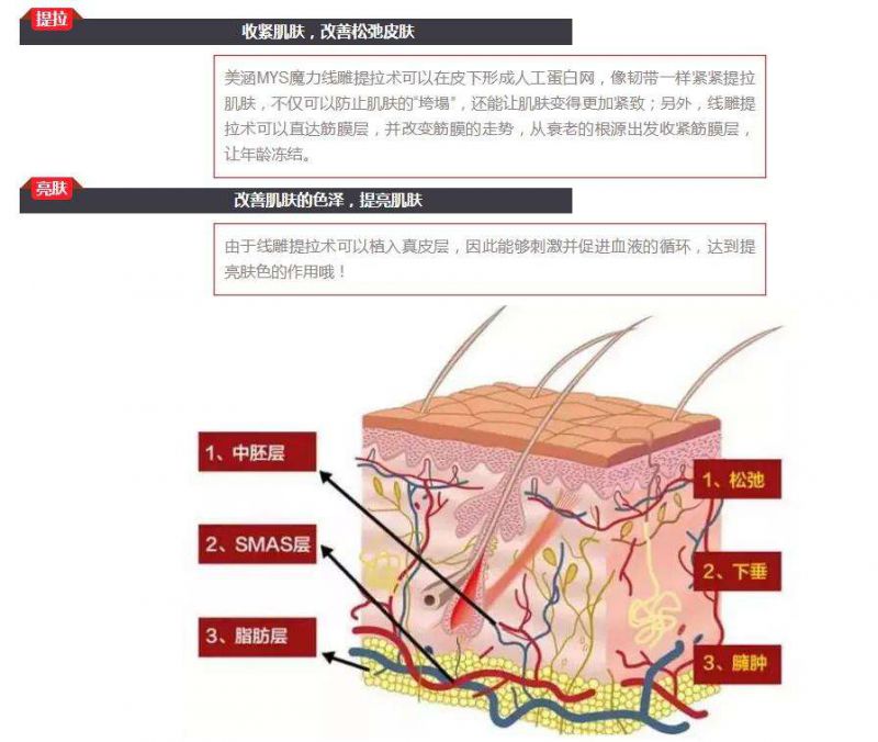 线雕就是向皮下SMAS层埋入医用可吸收线,来实现面部提升的目的。