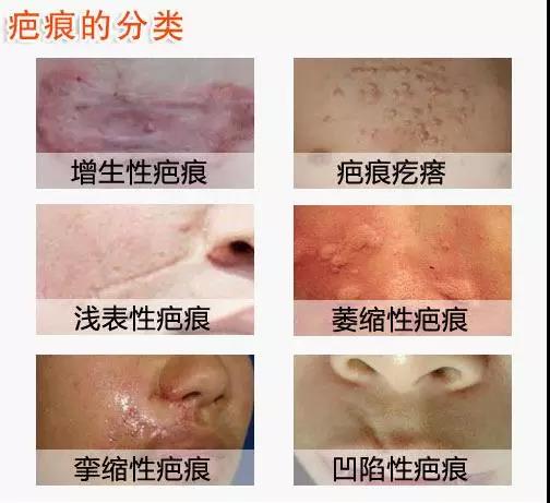 大体来说,疤痕分浅表性疤痕、增生性疤痕、挛缩性疤痕和疤痕疙瘩。