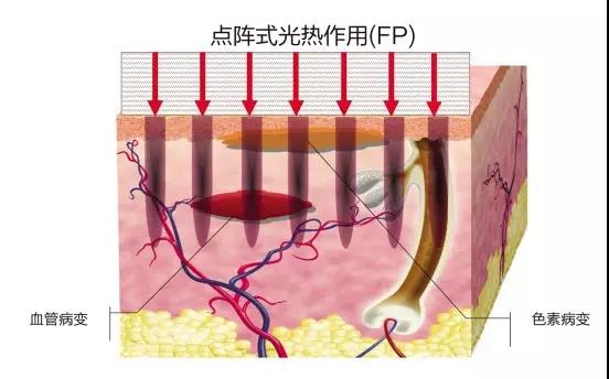 用激光在皮肤上平均地打上微细的小孔,直接对皮肤放射热能,激发损伤部分的真皮组织进行修复,使真皮中的胶原和成纤维细胞重新排列,促进皮下胶原纤维及弹性纤维成熟,以使得疤痕变得更加平滑。