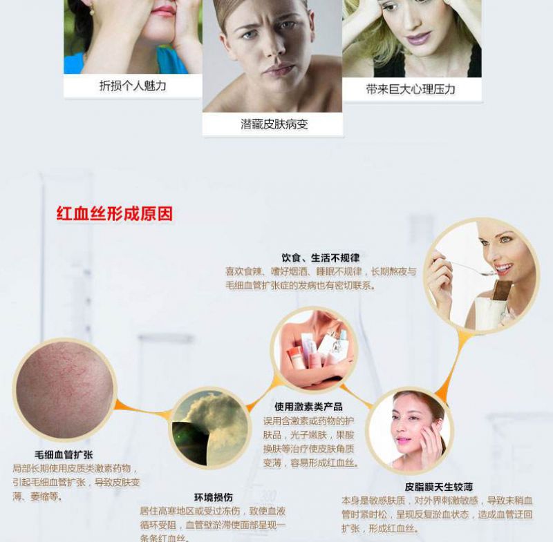 同时,还会刺激皮肤深层的胶原纤维再生,增厚皮肤表层,不再让皮肤的血管经常暴露在外面,降低红血丝再次出现的几率。