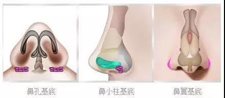 鼻翼基底是鼻唇沟上部和鼻翼交界的三角区域,鼻小柱基底位于两个鼻孔下方区域,鼻孔基底即为鼻孔下方与上唇相接的区域。