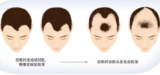 雄性脱发的发友,额角处的头发就会越加稀疏、后退,呈现出非常明显的“M”型,严重的甚至会蔓延至头顶。若额角毛囊还在,可用药物治疗,若额角已经趋于光滑,说明额角的毛囊已经坏死,建议植发。