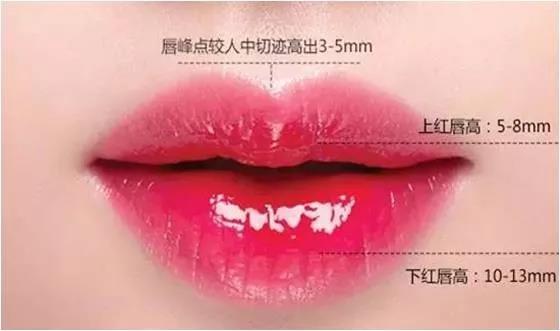 唇的厚度是指上、下唇轻闭时,上、下唇红部的厚度。日本美学专家们认为女性美唇标准值应为:上红唇8.2毫米,下红唇9.1毫米,男性则比女性稍厚2~3毫米
