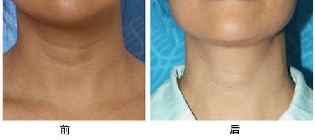 微量肉毒素的多点注射已被证实是治疗颈纹的的有效方法,通过阻断运动神经对颈阔肌以及皮下肌纤维的作用,是对颈部动态性皱纹的最好方案,并且能预防和减轻静态性皱纹的产生。