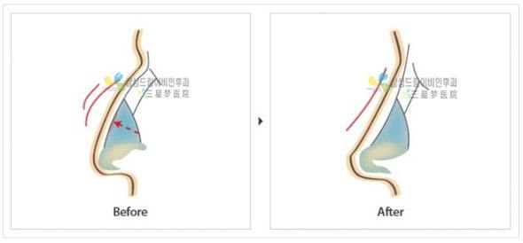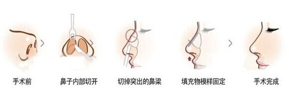 可通过鼻整形手术进行改善。即是将隆起的驼峰骨质去除,形成理想的必备轮廓线;将过多的中隔软骨及侧鼻软骨下端切除,使鼻尖抬高,甚至可使之稍稍上翘。这些手术操作通过鼻孔内的切口即可完成。待完全恢复后,外面不遗留任何痕迹,也看不见切口,从而还一个令你满意而自信的鼻子。