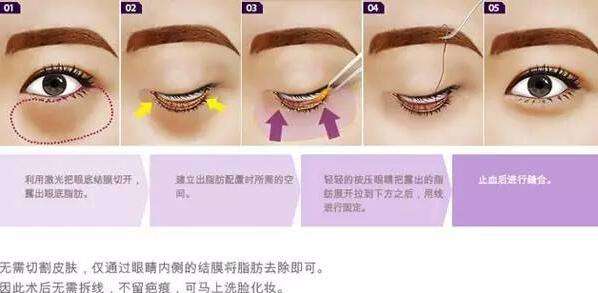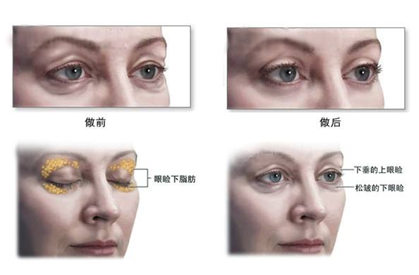 7、后彻底去除突出的眼袋,收紧下睑肌肤,改善局部细纹。