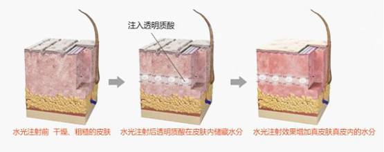 8、水光娃娃是将大量的小分子玻尿酸和营养液注入皮下