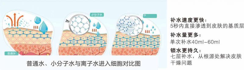 1、紧急补水:水氧仪器喷射出的水氧分子可以直接通过毛孔进入皮肤深层,因此它的紧急补水功能最强大!