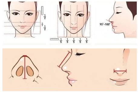 一个好看的鼻子,要符合“三庭五眼”,侧面看鼻子占脸部横向分割1/3,正面看鼻子占头部纵向分割1/5,额部与鼻梁应成角115-135度,而鼻与上唇应成角95度左右,鼻中柱的长度为三角形高度的1/3。