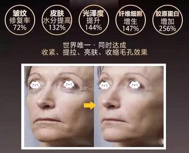 8.有效改善真皮层的致密度:72小时内使细胞外胶原蛋白增加256%。