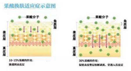 果酸换肤就是拿果酸来换肤的意思。即使用高浓度的果酸进行皮肤角质的剥离作用,促使老化角质层脱落,加速角质细胞及少部分上层表皮细胞的更新速度,促进真皮层内弹性纤维增生。