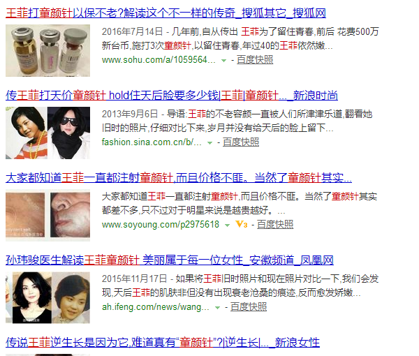 在现代这个靠“脸”吃饭的娱乐圈里,医美美容保养已经渐渐成为众多明星的“刚需品”,当然,王菲的经纪人否认了王菲打针的传闻。但天后毕竟是天后,知名度那可是杠杠滴,铺天盖地的新闻,高强度的曝光,让童颜针也成为了医美界的传奇!