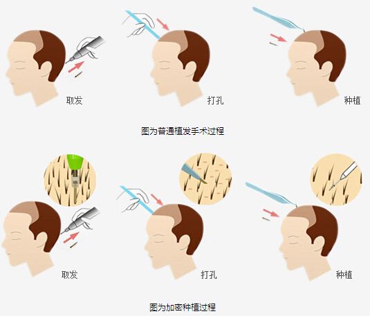 头顶加密种植是运用自体毛发移植的原理,采取后枕部持久性生长的健康毛囊,经过分离成单株或多株毛囊单位,通过精细的显微的技术,把毛囊单位移植到没有头发的头顶,这些被移植过去的发根可以在新的秃发部位继续生长,且它的生命力仍和在枕部时一样,持久不再脱落。