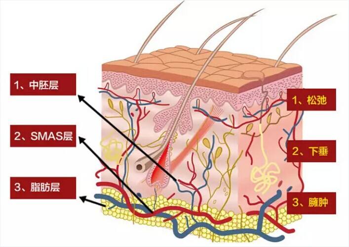 热拉提,是射频技术的升级版聚焦射频,突破了以往射频由表及里的加热模式,解决了其作用层次浅,不能加热筋膜层的问题;其聚焦射频能量,能越过表层皮肤,直达皮下SMAS筋膜层,有效激活真皮胶原蛋白重组与再生,达到提升松弛的面部线条以及紧肤等作用。
