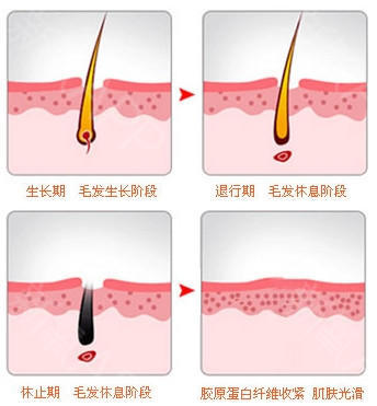 就毛发自身的生长周期来说,不同部位的毛发生长周期不一样,一般在4-6次后取得较满意的脱毛效果。