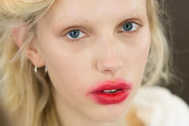 嘟嘟唇,它有两个特点,一个是嘴唇会厚一些,另外呢就是自带水嘟嘟的光泽,避开天生的不说,通过化妆也能达到这样的效果。只不过牵扯到化妆,就会容易下手太重。