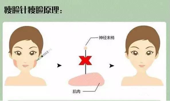 瘦脸针原理是通过药物注射来阻断神经与肌肉之间的神经冲动,麻痹过于发达的肌肉,从而达到瘦脸的目的。