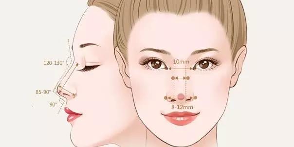 侧面看,标准的鼻额角要在120~135°左右,鼻子和上唇的角度应该在90°左右。